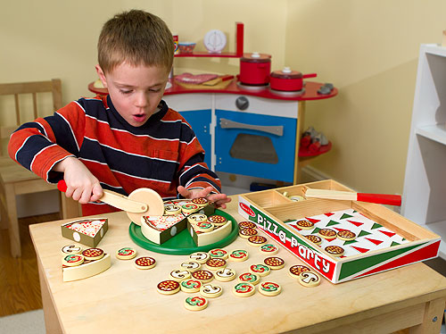 Name: Pizza Party - Wooden Play Food Manufacturer: Melissa & Doug Item Number: 167 Price: $19.00